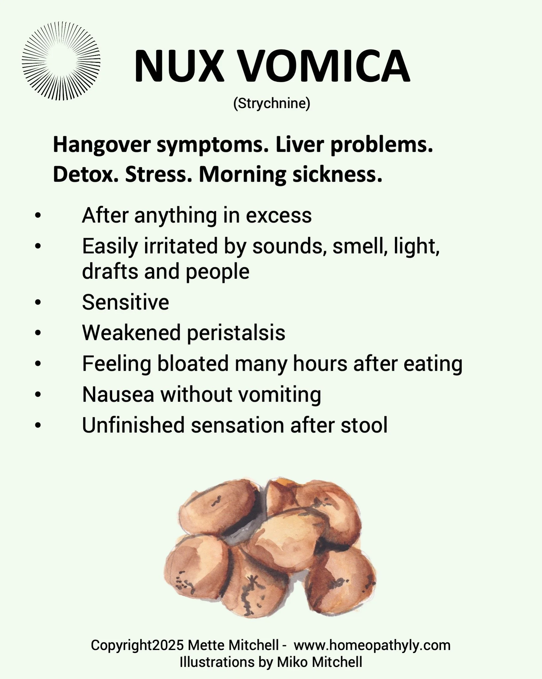 This patient is irritated and angry, and it may be a person living a life with a lot of daily stress, and one begins to behave accordingly. The remedy is also good if you have had too much food, too much fatty food, or too much alcohol. The remedy is good for people who have ‘too much for their own good’ and both work and party too much. It is for people who fill their lives with stimuli (coffee to get up / wine to fall asleep, etc.).